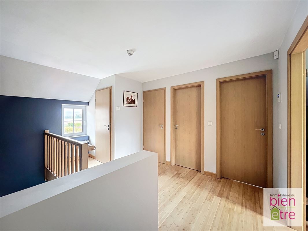 "L'Immobilière du Bien-Etre, agence de l'année 2025 en Brabant Wallon, vous présente cette maison implantée sur un terrain de 7a86ca. Elle vous séduira par son charme ainsi que sa fonctionnalité. Cette maison développe une superficie bâtie de 246 m², dont 197 m² habitables actuellement. Elle se compose, au rez-de-chaussée, d’un hall d’entrée avec toilette séparée, d’un bureau, d’un vaste séjour comprenant un salon en demi-niveau ouvert (en mezzanine) sur la salle à manger, d’une cuisine américaine entièrement équipée, d’une buanderie et d’une pergola bioclimatique haut de gamme. À l’étage, un hall de nuit distribue 4 chambres (16 -14,3-13-13 m²), 2 salles d’eau — une salle de bain et une salle de douche — ainsi qu’une toilette séparée. Le bien dispose également de deux caves de rangement, d’une terrasse, d’un abri de jardin et d'une borne électrique. Excellente performance énergétique notamment grâce à ses 22 panneaux photovoltaïques. PEB B - 143 kWh/m².an. Vous rêvez d'une maison fonctionnelle où rien n'a été oublié ! Ne cherchez plus ! Elle est là pour vous ! Appels d'offres à partir de 489.999€ sous réserve d'acceptation des vendeurs. Fixer DIRECTEMENT votre créneau de visite via notre site