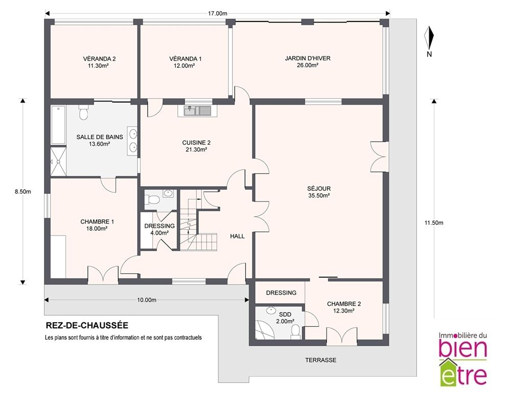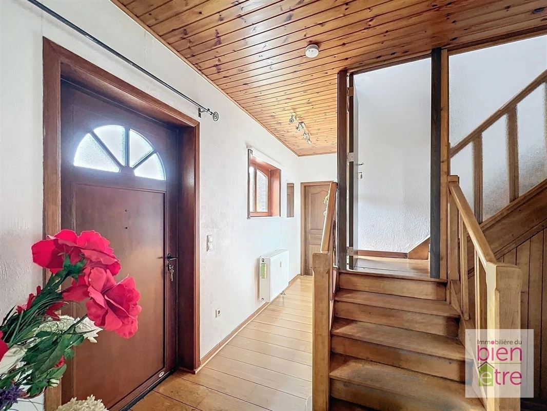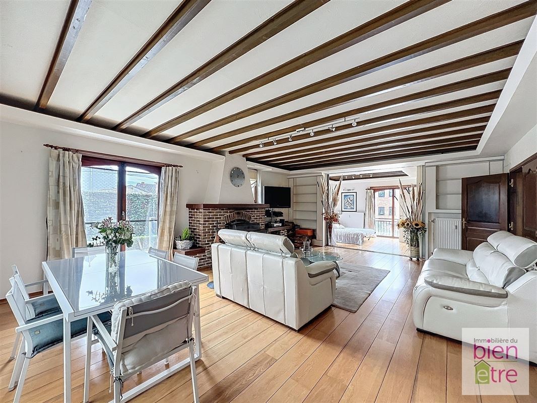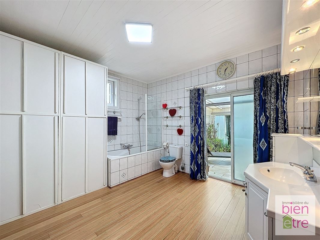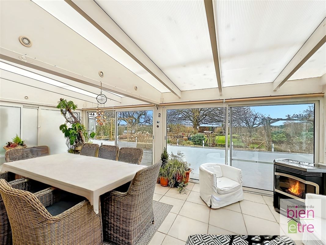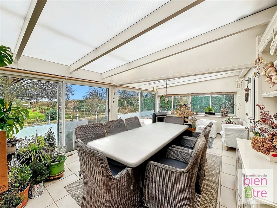 Dès l'entrée, vous serez séduit par son atmosphère chaleureuse. Elle comprend: hall de jour et de nuit, vaste séjour lumineux (avec FO) avec accès direct à un jardin d'hiver de 27m² (idéal pour les soirées cosy au coin du feu), cuisine moderne entièrement équipée avec îlot central (et accès direct au jardin d'hiver également) avec vue sur le jardin.
