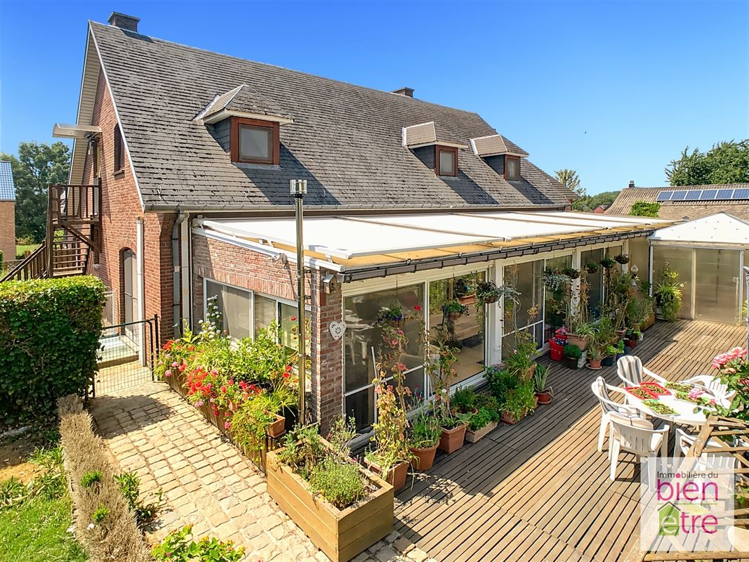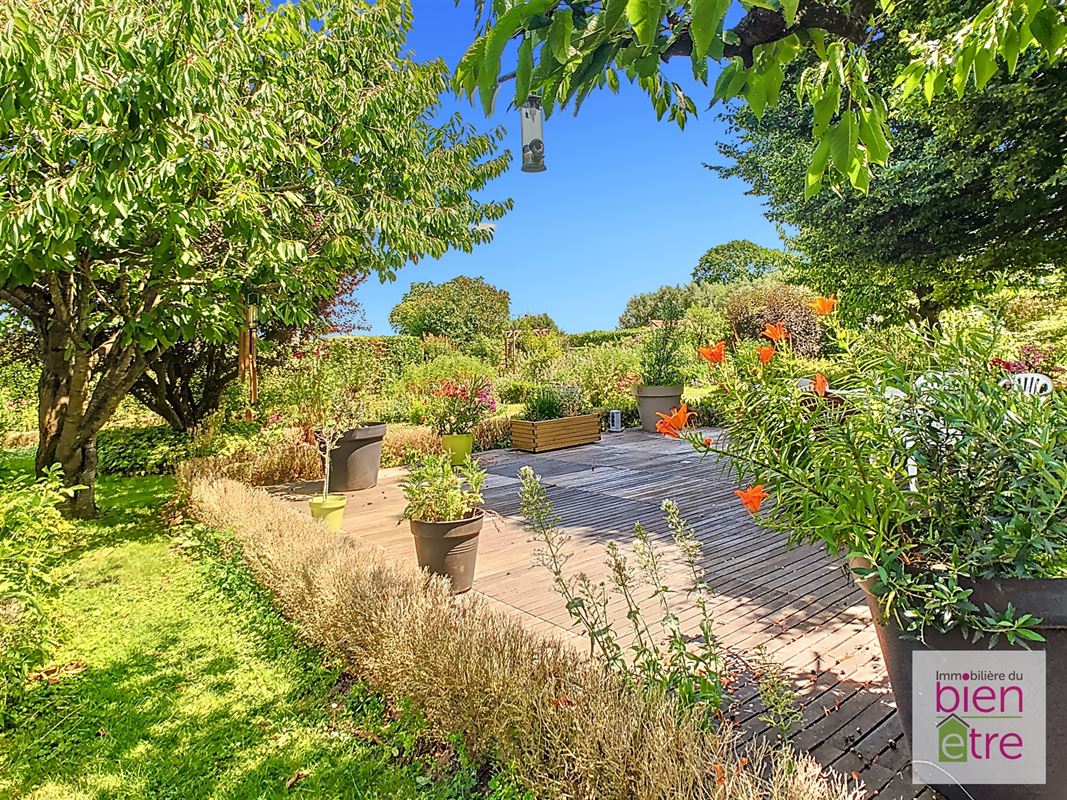 Elle possède également un magnifique jardin parfaitement entretenu qui a été élu un des plus beaux jardins fleuris du Brabant Wallon, plusieurs allées et terrasses, avec cerise sur le gâteau, une vue bucolique sur les champs à l'arrière sans vis-à-vis.