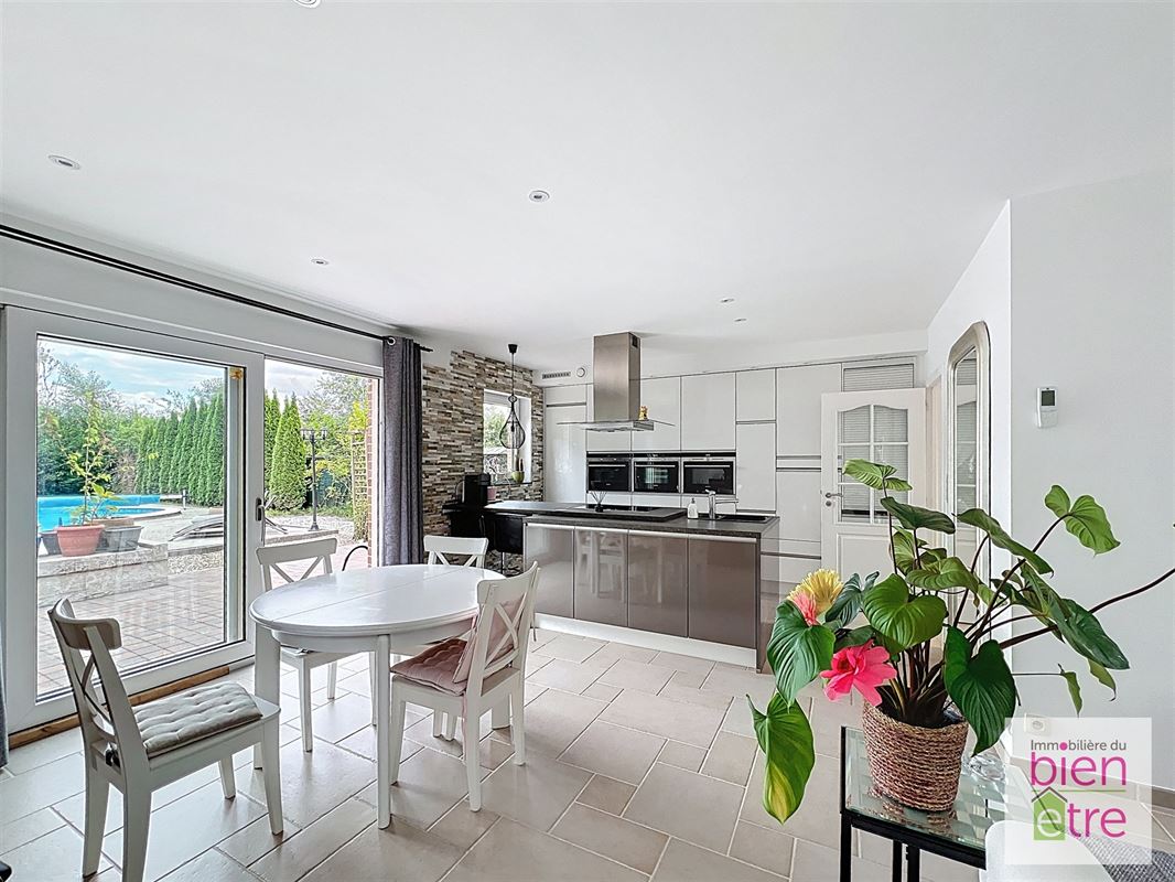 À l'intérieur, vous serez séduit par une surface habitable de 175 m² qui se compose d’un intérieur moderne et lumineux. Le rez-de-chaussée vous accueille avec un hall d'entrée élégant menant à une cuisine USA super équipée contemporaine, entièrement équipée et donnant sur un séjour spacieux (de +/- 36m² cuisine inclue) baigné de lumière naturelle. Cette pièce de vie ouvre directement sur le jardin, parfait pour se détendre au bord de la piscine lors des chaudes journées d'été. Pour être votre maison idéale tout en fonctionnalité, un garage pratique vient compléter cet ensemble, assurant un espace de stationnement sécurisé ainsi qu'une buanderie (avec accès direct sur l'extérieur). Aux étages, vous découvrirez 5 chambres (24-15,5-15,5-10-10 m²) ainsi qu'une salle de bains luxueuse et d'une salle de douches. L'aménagement intérieur allie fonctionnalité et design raffiné pour un confort optimal.
