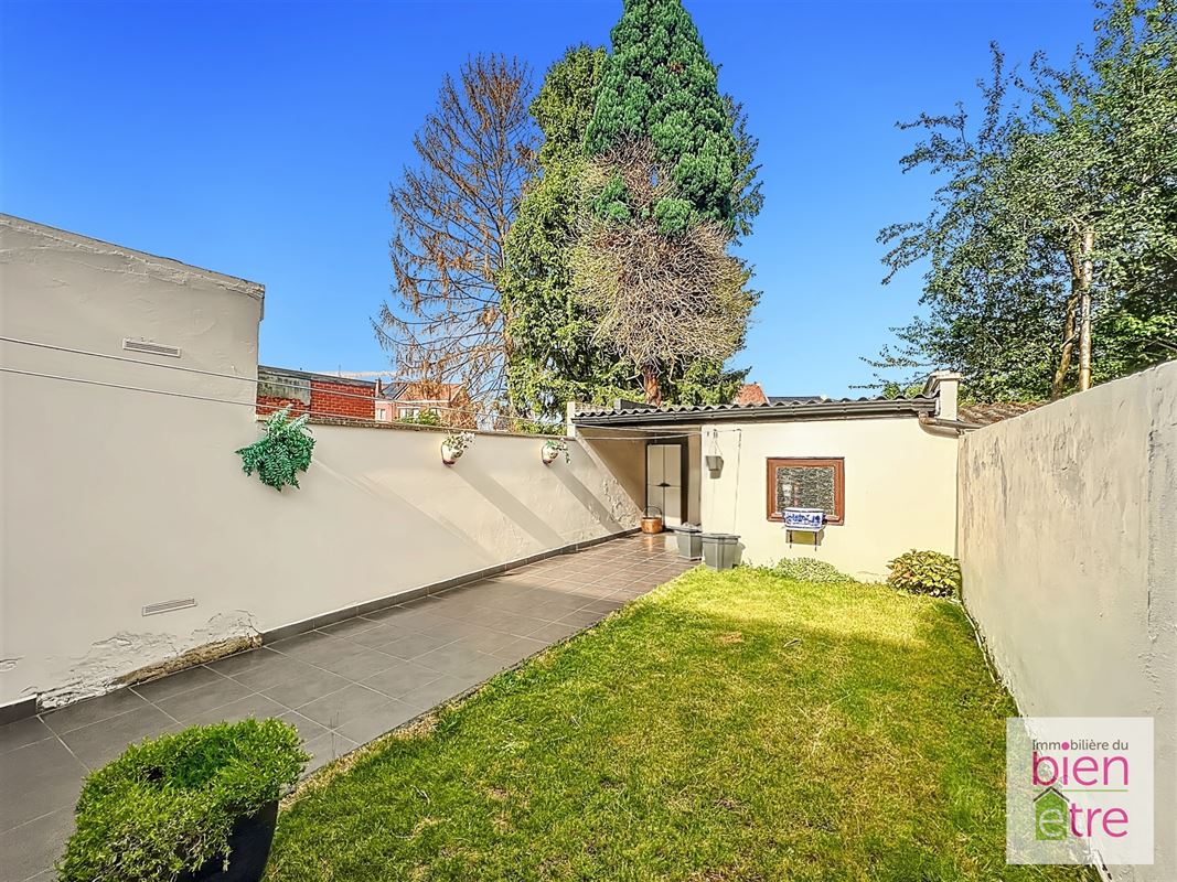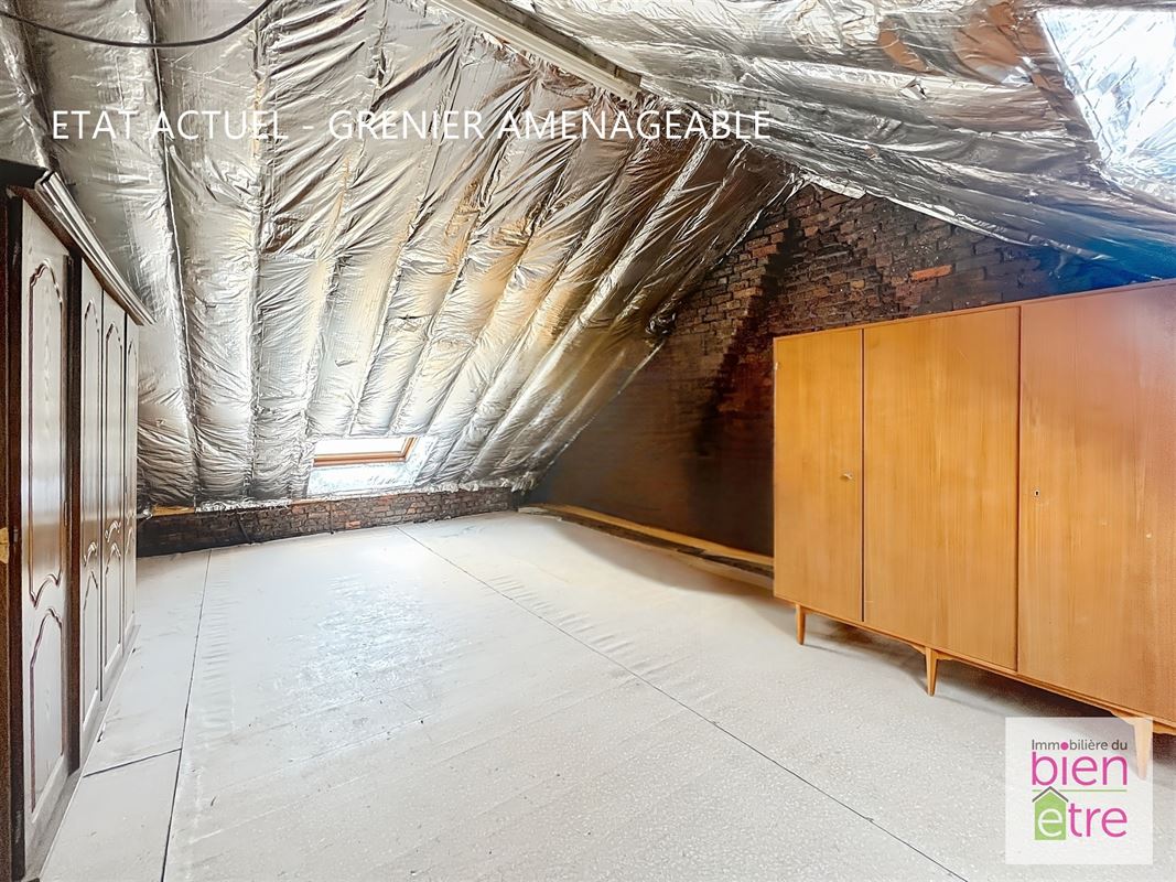 Superbe maison bien entretenue de 178 m² construits (+/- 120 m² habitables) implantée sur un terrain de 1a20ca orienté Est arrière. Elle comprend : hall d’entrée, séjour, cuisine équipée avec accès direct sur la terrasse et le jardin, wc séparé au rez, chaufferie, 2 chambres (13.,7-11,6m²), salle de douche, caves de rangement, terrasses dont une partie couverte, jardin ainsi qu'un volume secondaire faisant office de buanderie/atelier. Elle dispose aussi d'un grenier aménageable (35m²) permettant un aménagement en une suite parentale ou en pièce polyvalente. Un garage 1 voiture (24m²) à proximité est en option en sus du prix. La rareté des stationnements dans les rues avoisinantes garantit une location immédiate éventuelle dès qu’un garage se libère, offrant ainsi une rentabilité stable (de +/- 80€/mois). PEB Classe C - 239 Kw/m² - UE2025079014577. Appels d'offres à partir de 199.999 € sous réserve d'acceptation des vendeurs (hors garage). Une opportunité à ne pas manquer ! Une visite ? Consultez notre agenda et fixer déjà votre visite directement en ligne sur notre site