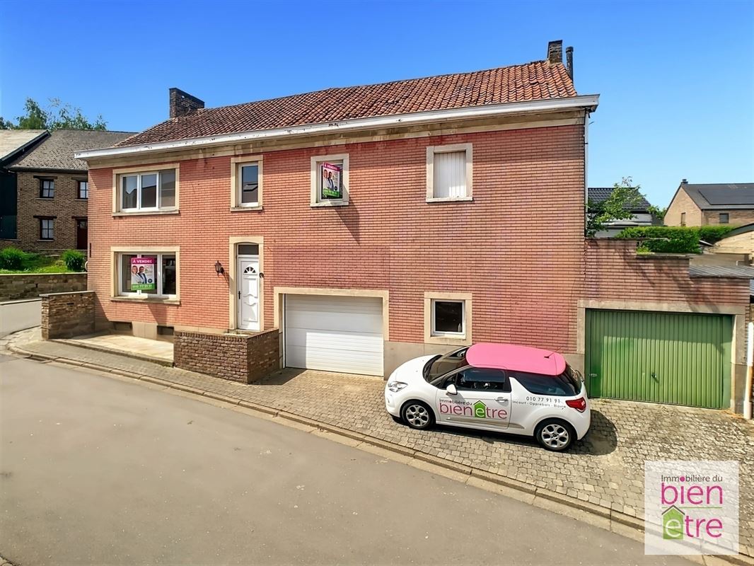 VISITES SUSPENDUES - OFFRE ACCEPTEE-Maison à rénover entièrement implantée sur un terrain de 4 ares. Elle vous offre actuellement: hall d'entrée, séjour, salle à manger/cuisine non équipée, 1 salle de douche au rez pouvant être transformée en cuisine, 5 chambres (14.5-13-11-11-10 m²), salle de bains à l'étage, spacieux grenier aménageable ouvert jusqu'au faîte (+/- 65m²), cave, 2 garages. Certificat PEB classe G (597 kWh/m².an) - UC20250320029016). Le terrain donne sur 2 rues. Les greniers aménageables ainsi que les annexes agricoles dont un fenil (+/- 50 m² en tout) offrent la possibilité de créer un second logement voir plusieurs appartements. Visite virtuelle avec la maison dans son état actuel sur notre site
