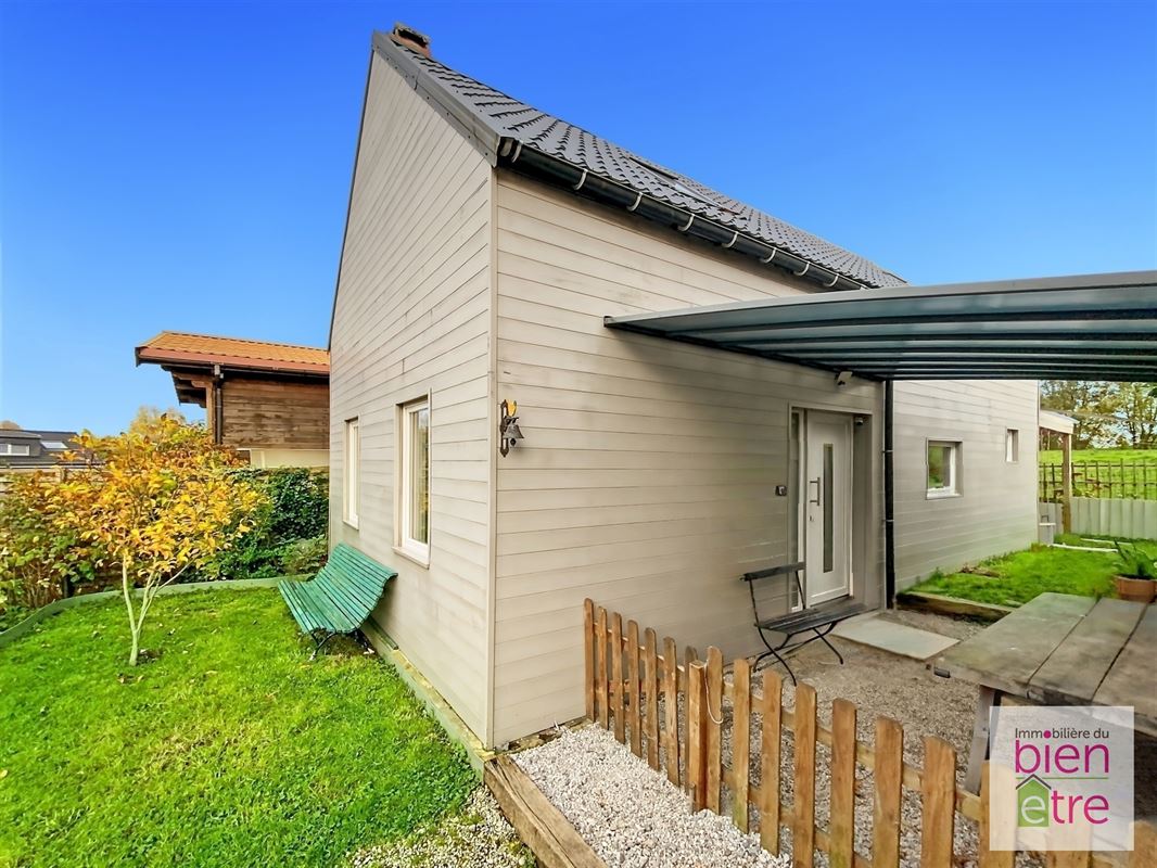 Maison hyper cosy implantée sur un terrain de 1a82ca orientée Sud-Est côté terrasse. Elle comprend: séjour avec poêle à pellets, cuisine américaine ouverte semi-équipée, 3 chambres (+/- 12,6-12-9,4m²), 2 salles d'eau (salle de bains et salle de douche avec espace buanderie), terrasse, emplacement de parking. PEB C - 248 kWh/m².an - UC: 20251030007152. Pompe à chaleur réversible dans la salle à manger. Un havre de paix à petit budget en Brabant Wallon. Vue magnifique de la terrasse sur les champs et le site historique de la ferme de la Ramée. Appel d'offres à partir de 224.999 € sous réserve d'acceptation des vendeurs. Vous pouvez fixer vous-même directement une visite dans notre agenda via notre site